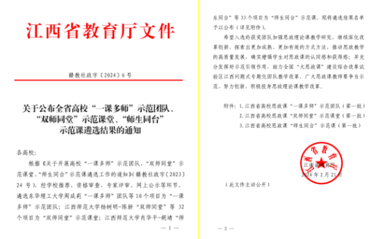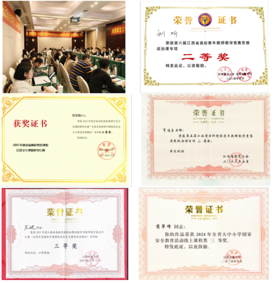 為促進教育資源共享,提升教師教學水平,推動思政課高質量發展,馬克思主義學院自2021年以來,推動高校思政課“問題式專題化團隊教學改革”。作為“毛澤東思想和中國特色社會主義理論體系概論”“問題式專題化團隊教學改革”組長單位,舉辦全省“概論”課跨校集體備課會30余次,會議邀請了全國知名專家學者進行指導,提升了教師教學能力和水平。近三年來,獲得江西省巾幗建功先進集體榮譽1項,獲評省級青年教學比賽二等獎2項,省級思政課教學比賽二等獎1項、三等獎1項,全省大中小學國家安全教學活動線上課程比賽三等獎1項。