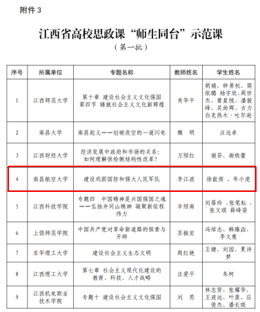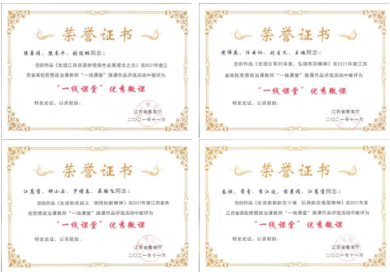 為貫徹落實習近平總書記在學校思政課教師座談會上的重要講話精神,學院自覺肩負為國家和社會發展培育時代新人的責任使命。開展“四色”“三同”“一線課堂”實踐活動。“四色”是根據江西地域特色和學校自身辦學特色,聚焦習近平新時代中國特色社會主義思想在江西生動實踐的典型樣本,充分利用“紅色”(革命文化)、“綠色”(生態文化)、“藍色”(航空文化)和“古色”(傳統文化)等“四色”文化資源;“三同”是師生“同實踐同開發同講述”,共同挖掘“一線課堂”中的豐富育人元素,包括經典案例、感人故事以及蘊含其中的價值追求、偉大精神、理想信念和家國情懷等,撰寫一線紀實、設計教學專題、打造精品課例。近三年,學院共開展“一線課堂”活動29次,獲批省思想政治工作精品重點項目3項,省“一線課堂”優秀微課5項。