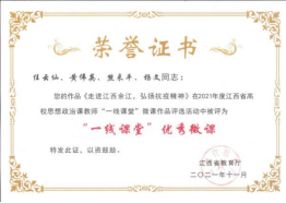 學院深入學習貫徹習近平總書記關于思政課建設的重要論述,積極落實教育部及省教育廳關于“大思政課”建設綜合改革的文件精神,統籌負責全省《毛澤東思想和中國特色社會主義理論體系概論》課“問題式專題化團隊教學改革”任務,通過課程創優、教師創優、資源創優,不斷匯聚“大思政課”建設走深走實的新動能新優勢。獲省級教學成果獎一等獎2項、二等獎2項,省級“一流”課程2項,省高校思政課教學改革創新團隊1個、省級“雙師同堂”示范課程1項、“師生同臺”示范課1項、“家門口”大思政課實踐基地1項,省級“最美思政課”1項,省優秀特聘教授1人、省優秀兼職教師2人;指導學生獲第七屆全國高校大學生講思政課公開課展示活動三等獎1項、省第七屆江西省學校共青團“微團課”展示交流活動二等獎1項。