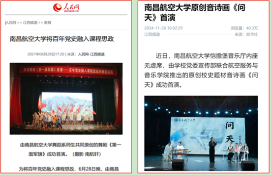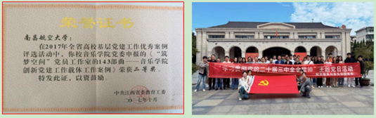 學院堅持“黨建”引領,緊密結合新時代黨的建設偉大工程,順應高校師生對美好生活的追求,充分發揮學院的學科優勢。我們以“美育”為抓手,將初心使命、理想信念、歷史文化和時代精神等積極元素融入基層黨建工作,致力于全面提升學生的思想品德和藝術素養。通過筑夢空間黨員工作室、“厚德·精藝”大講堂、紅色講師團“藝心向黨”美育思政課、學生藝術團等平臺,我們傳承紅色基因,塑造紅色文化和航空報國精神的育人品牌。其中,《“筑夢空間”黨員工作室的143部曲》榮獲全省高校基層黨建工作優秀案例二等獎。