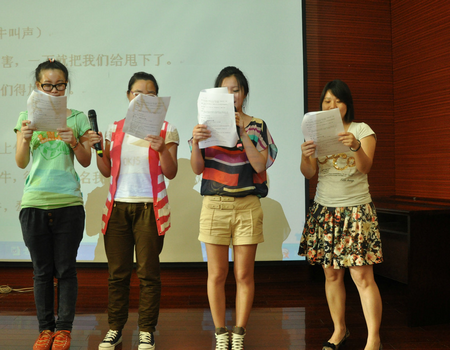 在講座過程中,為了使同學(xué)們更深刻地領(lǐng)略廣播劇《老鏡子》的藝術(shù)美,兩位資深主持人還組織了在座的學(xué)子現(xiàn)場表演《老鏡子》中的精彩片段,現(xiàn)場氣氛活躍,同學(xué)們踴躍上臺嘗試。兩位廣播主持高度贊揚了我校播音主持專業(yè)學(xué)子扎實的語音功底和突出的表演技巧,并結(jié)合廣播劇《老鏡子》的原創(chuàng)表演,寄語昌航學(xué)子加強藝術(shù)素質(zhì)的涵養(yǎng)、改善聲音成就完美嗓音。